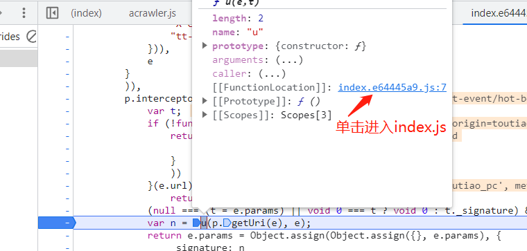 2.在u函数处打断点,并在页面再次触发热点新闻的请求(点击 换一换)