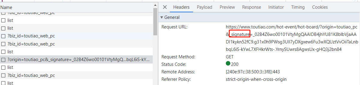下图是头条热点新闻的http请求,可以看到其中只带了一个_signature参数。